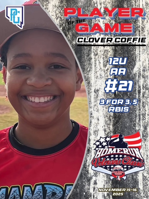 Clover Coffie continues to shine as one of the brightest young athletes in our program. A standout performer both on and off the field, Clover earned his Player of the Month recognition through exceptional consistency, leadership, and pure passion for the game. His impressive performance at the HomeRun Veterans Classic—going 3-for-3 with 5 RBIs—showcased not only his growing skillset, but also his ability to rise in big moments.
